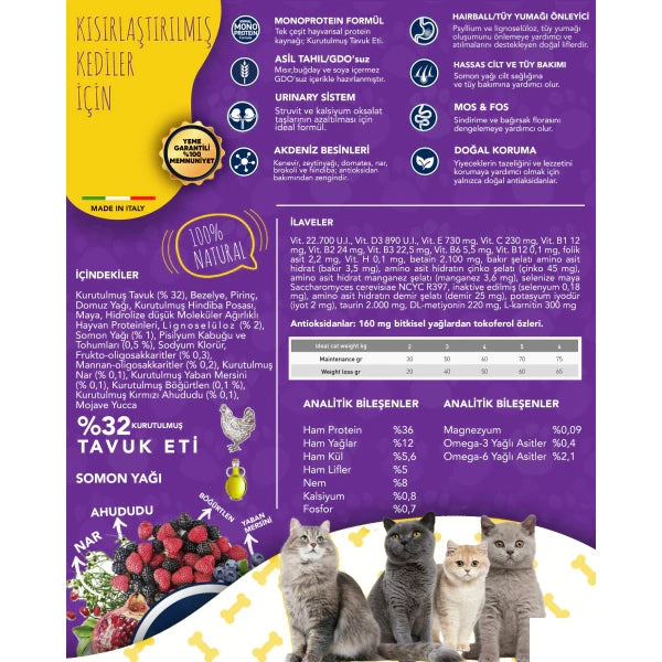 Exclusion Monoprotein Tavuklu ve Narlı Düşük Tahıllı Kısırlaştırılmış Kedi Maması 1,5kg